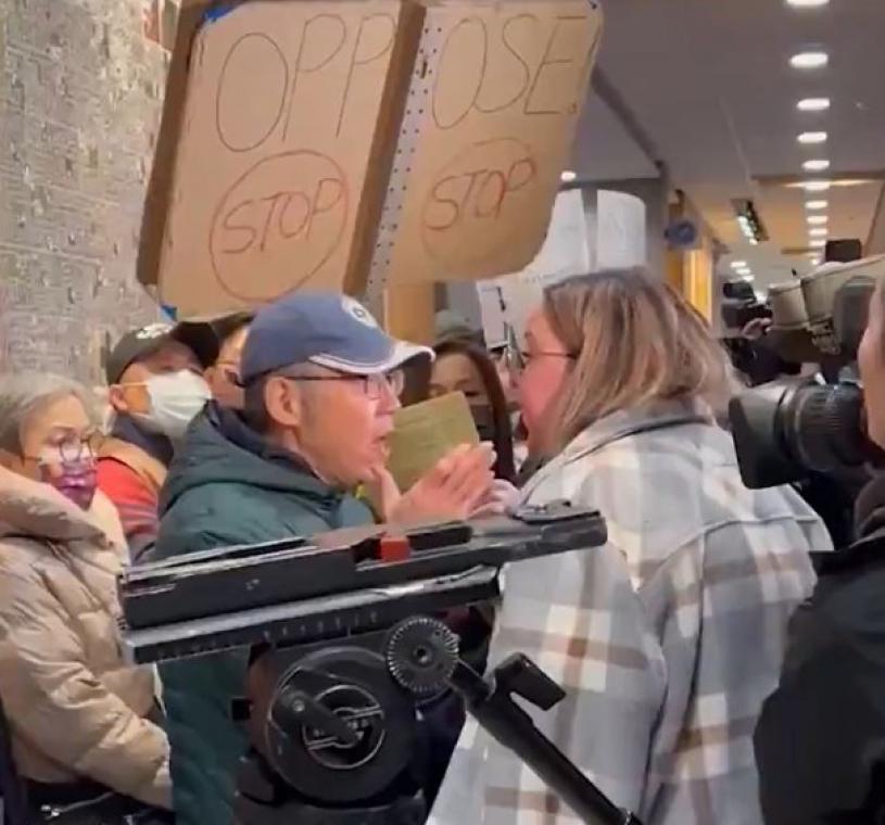 列治文市议会拟建安全毒品注射屋,引发市民强烈抗议。在咨询会上,一名白人女子和一名华裔老者发生争吵。这名女子破口大骂: