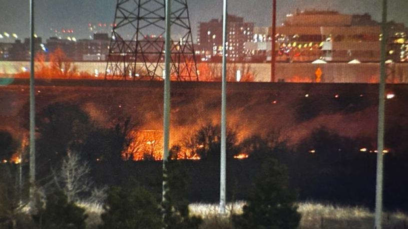 多伦多和旺市两地的消防员,正努力扑熄Steeles附近铁路沿线的草地大火。