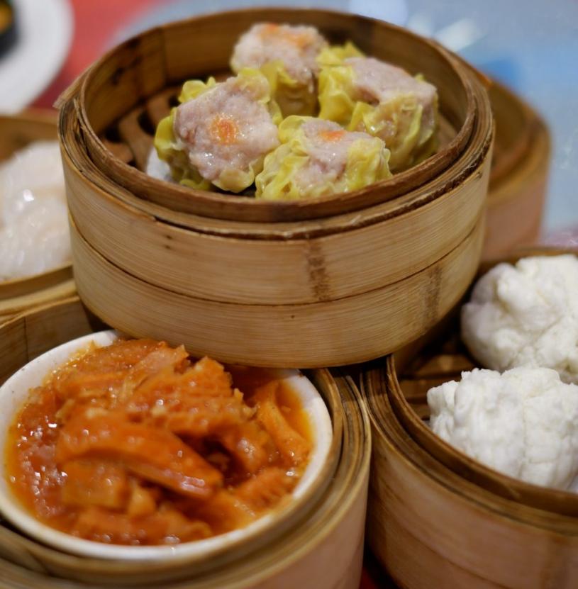 点心是店家自己制作,大多都是$5 一笼,烧卖大粒兼扎实、亦有罕见的鸡包仔及沙嗲金钱肚。海鲜方面,记者尝了蟹肉鱼肚羹以及美极龙虾,蟹肉鱼肚羹很足料,每口都有肉,龙虾则不过不失。