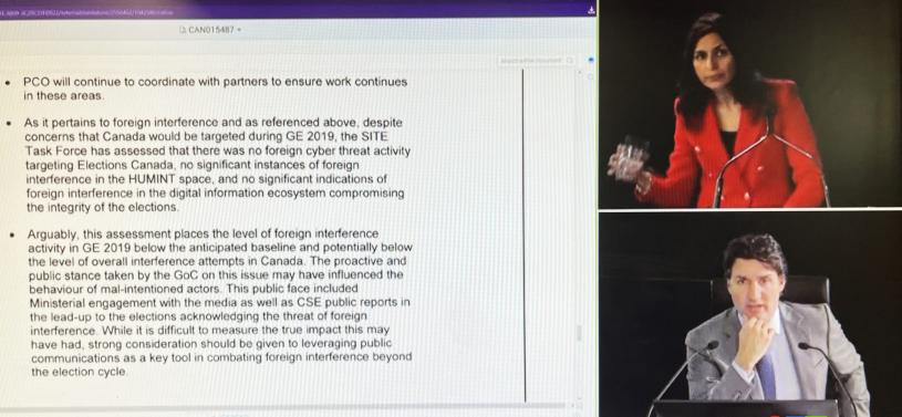 有关中国干预选举的指控,他指出一些情报系统的报告,口头和书面的讯息不太一致。杜鲁多强调在续任总理后,他对于防止中国干预采取了更多措施。他称,每个政府都对中国采取复杂的做法,但自从两个加拿大人于2018年底被中国拘捕后,加中关系就进入了另一个局面,面对中国霸权干扰,加拿大须有所因应。