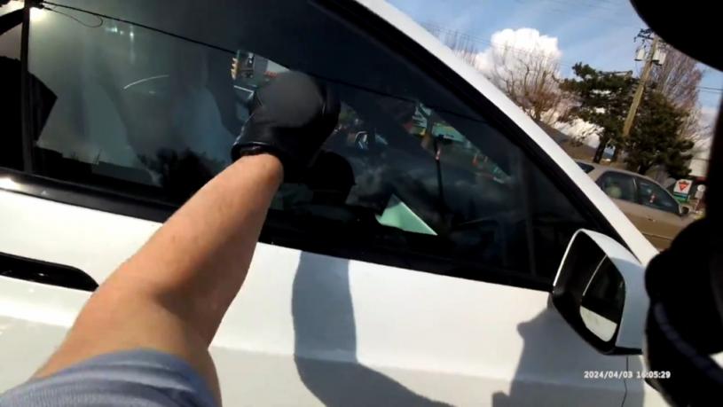 最終,警察敲了敲車輛乘客側的窗戶說:「嗨,靠邊停車!」這回司機終於注意到警官了。