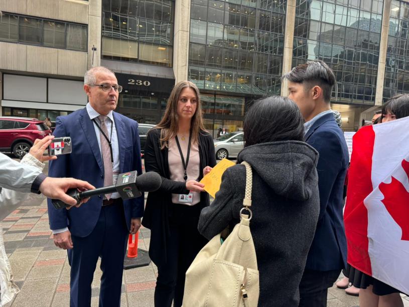 移民局永久经济移民部高级职员及移民部传媒联络助理总监代表接信。加拿大香港菁英协会(前HK Pathway Stream B (Classes of 2016 and 17 Graduates) Alliance) 联同移加港人救生艇2023年滞后群组(由2023年4月至8月PR申请者组成)带同请愿港人向两位高级职员表达诉求,挥动加拿大国旗及递信请愿。
