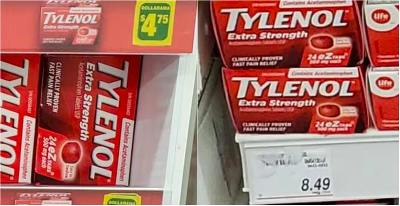 该网友透露,一包24粒装的特强泰诺在一蚊店售价仅4.75元,但在Loblaw旗下的这家商店售价为8.49元,但就未指明两家商店的具体位置。