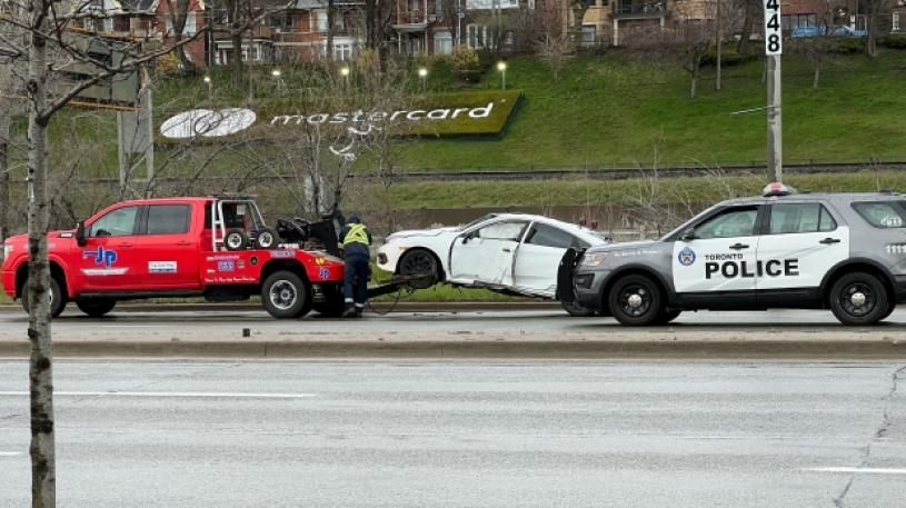 案發於今日早上 6 時許,司機駕車駛至Lake Shore Boulevard夾Jameson Avenue 地區,撞倒兩條燈柱,Lakeshore Boulevard三條西行車道受影響,曾一度被封閉。