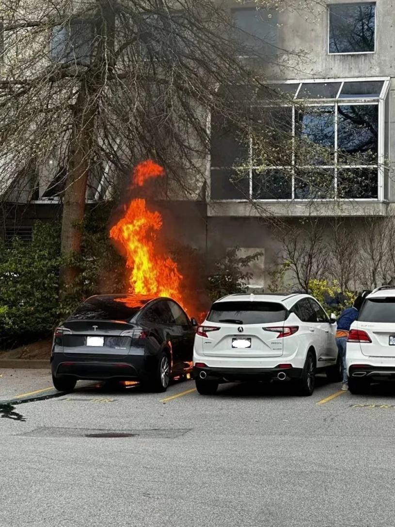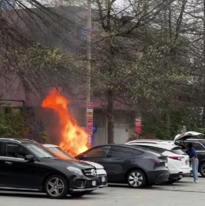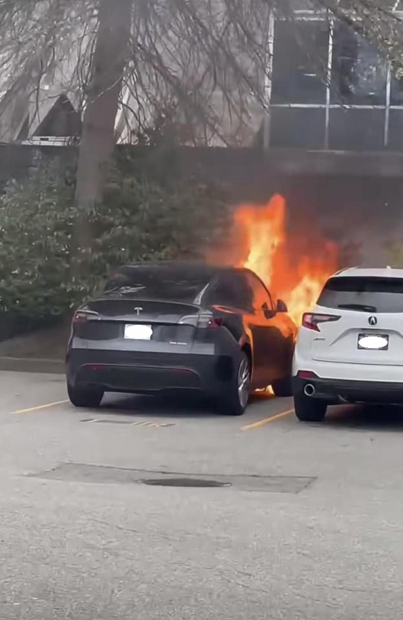 事发后不久,消防员到场将火扑熄,Tesla被拖车拖走,车身被严重焚毁,挡风玻璃尽毁,前轮车胎被烧至变形。泊于其旁的一辆白色Acura,车身亦有烧焦痕迹。有网民说,假如事故发生在室内停车场,后果不堪设想。