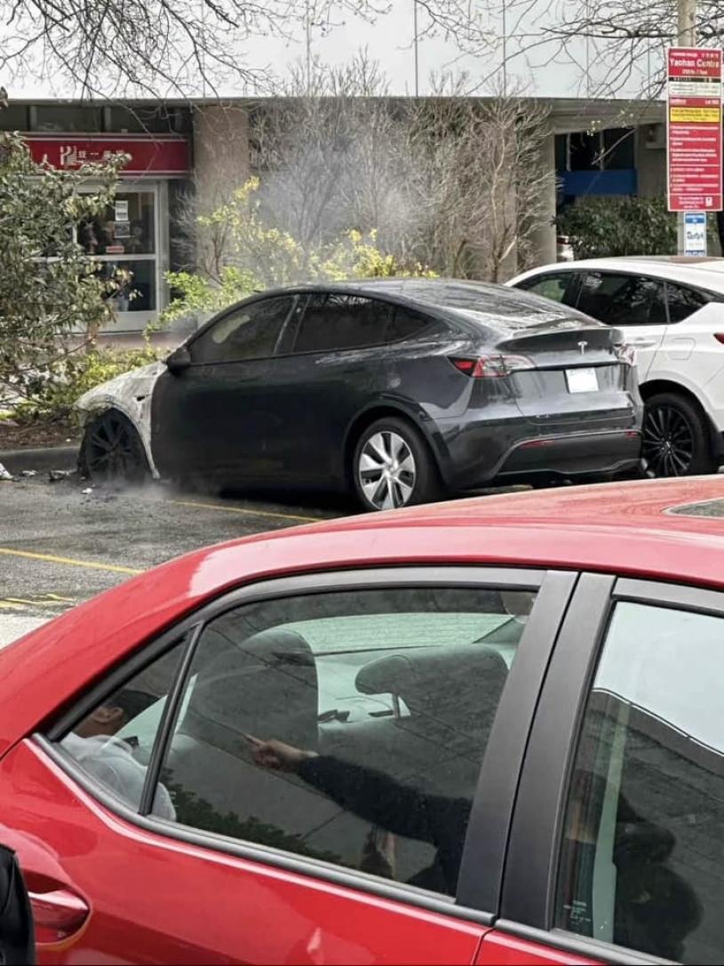 【有片】八佰伴停车场Tesla大火 网传新车落地即当灾