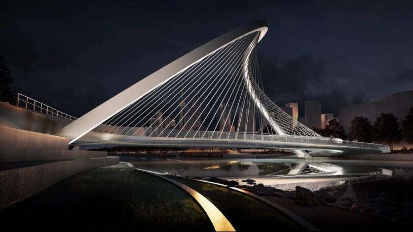 这座桥的设计是透过设计比赛中选出,由一个多学科团队负责,其中包括英国建筑公司 WilkinsonEyre、当地建筑师 Zeidler Architecture 和本土顾问 Two Row Architect。