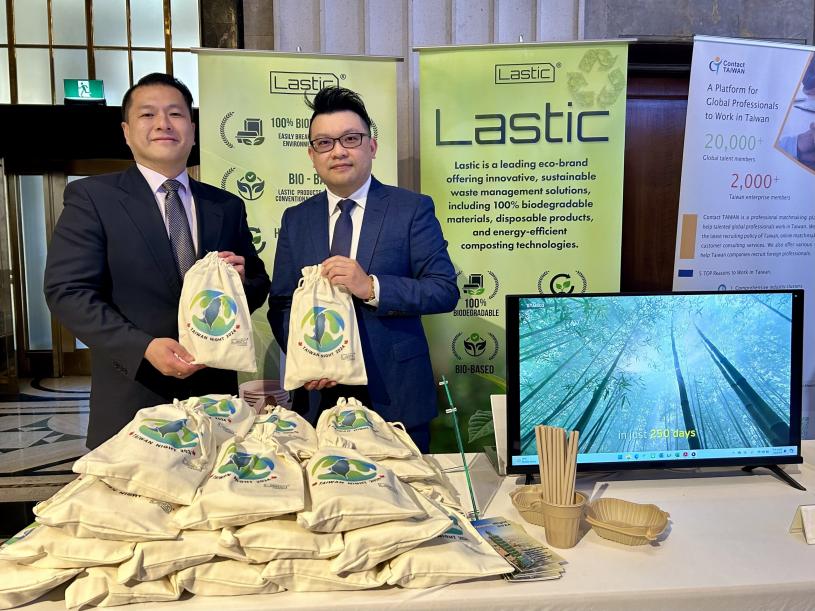Lastic展示竹纤维制造环保餐具。星岛记者黄忆欣摄