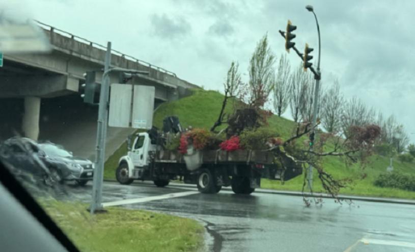 【星岛综合报道】列治文皇家骑警表示,一名商用货车司机在没有适当固定好盛载物的情况下,将一堆树木枝干和植物放置于开斗货架上并在道路上行驶,因此被处以三项罚款。