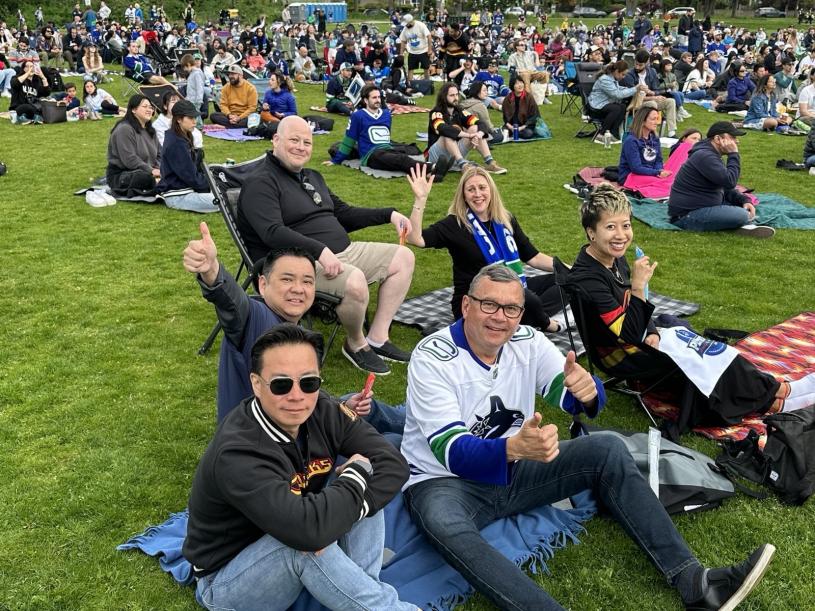 【星岛综合报道】昨天星期日晚上,数百人聚集在温哥华的 Oak Meadows 公园,参加温市首次官方提供的冰球加人队赛事观看派对。