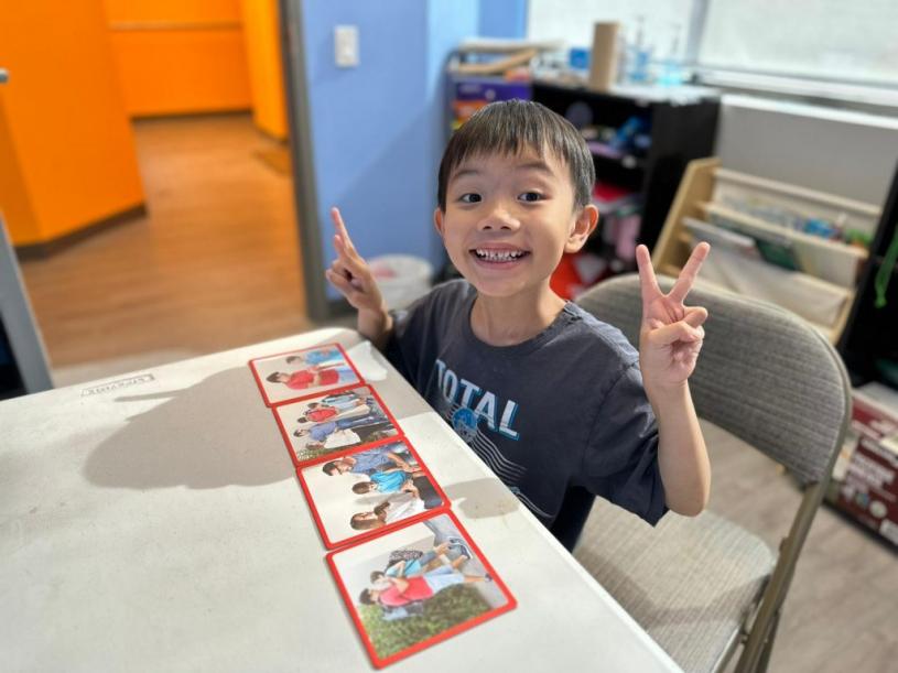 Alvin在智爱中心学习如何表达自己的想法。(Alvin妈妈供相)