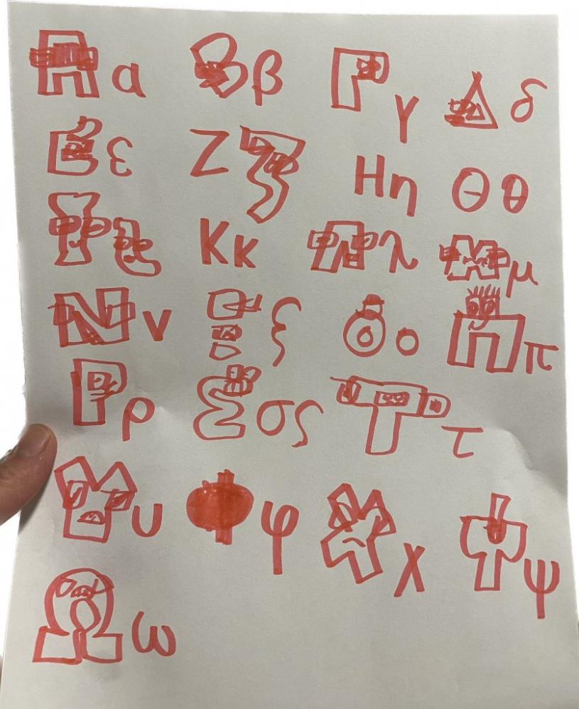 Alvin懂得倒背英文字母。图为Alvin对英文字母的创作。(Alvin妈妈供相)