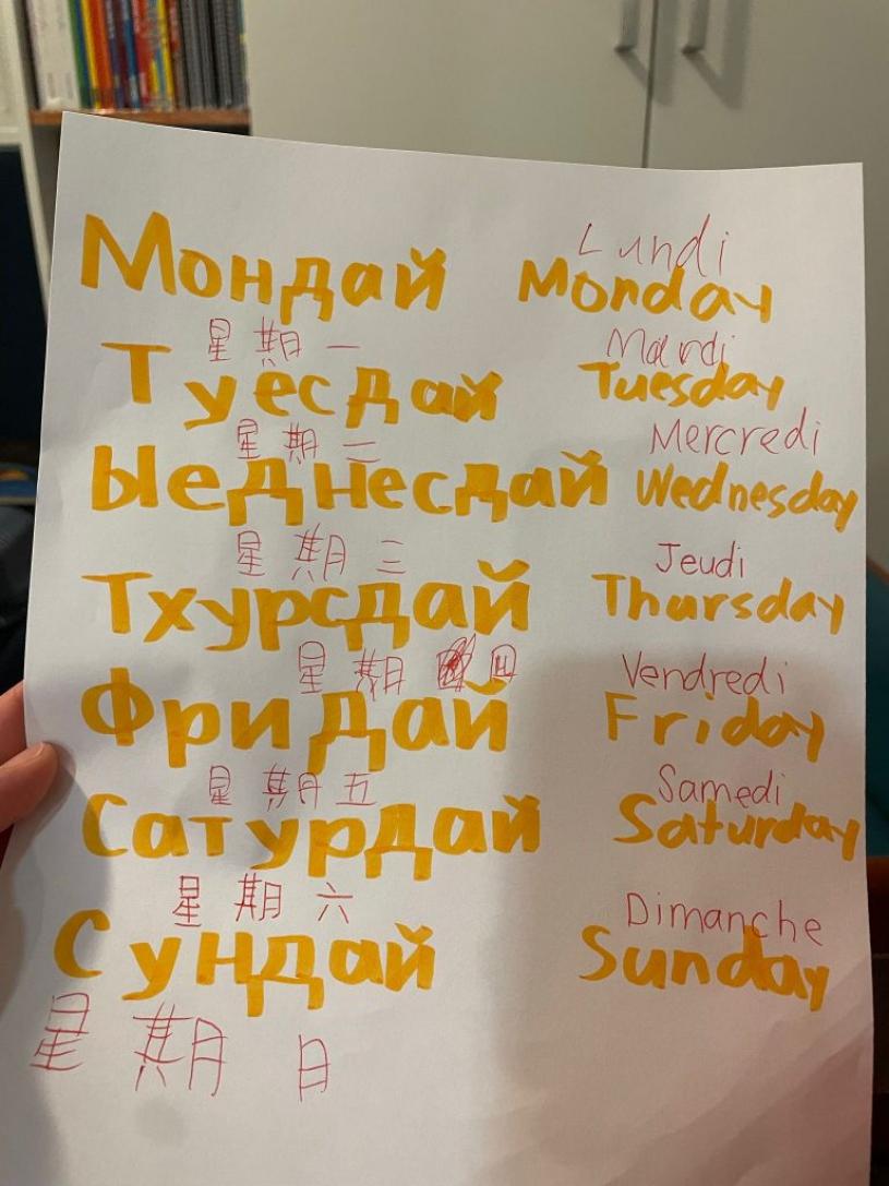 Alvin透过观看Youtube影片,自学其他国家语言,图为Alvin的笔记。(Alvin妈妈供相)