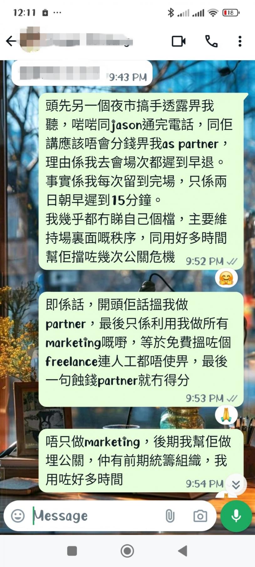 Jimmy向Jason要求退款。(截图由受访者提供)