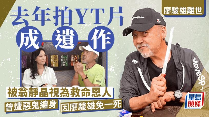 64歲男星廖駿雄今(18日)晨於東華醫院離世,翁靜晶今日在facebook公布好友死訊,她於facebook留言指:「廖駿雄先生,於5月18日零晨於東華醫院辭世,過程令人痛心。香港公立醫療系統之不足,已到了罄竹難書的地步。唯望廖氏家人節哀順變。與君一別,想不到已成遺作。」而翁靜晶所指的廖駿雄「遺作」,其實是去年9月,翁靜晶YouTube頻道開播時第一條影片,正是請來廖駿雄受訪,談及二人的奇幻經歷。