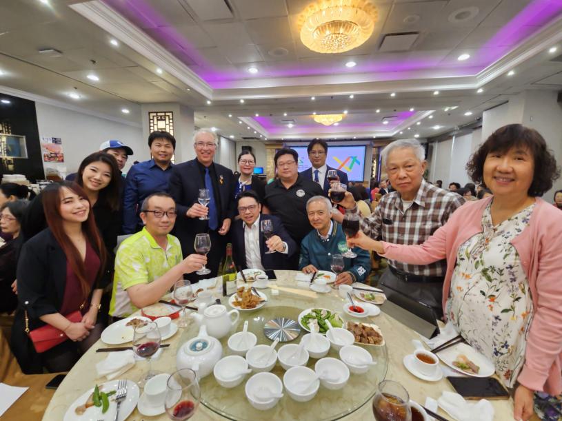 (卑诗省保守党党领John Rustad出席晚宴,和大温哥华台湾菁英会成员举杯。)