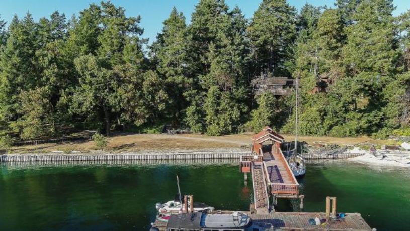 据苏富比地产(Sotheby’s Realty)提供的信息显示,该房产位于皮姆岛(Pym Island),占地6.2英亩,距离温哥华岛的独木舟湾码头(Canoe Cove Marina)仅10分钟船程。