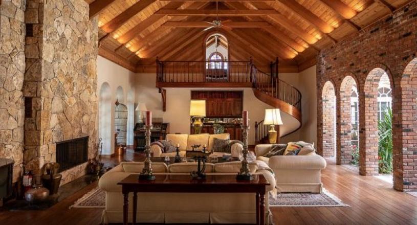 “这幢豪宅建于1980年,富丽堂皇的主屋设有四间卧室、四间浴室,还设有带书房和卫浴的男女主卧室、大型室内泳池、餐厅、带吧台的拱形天花板大型娱乐室、图书馆、玻璃天花板中庭、厨师厨房、带燃木烤箱的户外露台、游戏室、独立的宾客/管理员/佣人套房,以及可饱览顶级岛上及海上胜景的屋顶平台。”