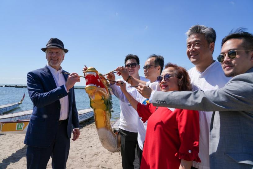 第36屆多倫多國際龍舟節上周四(23日)在Sunnyside Pavilion Cafe舉行點睛儀式。