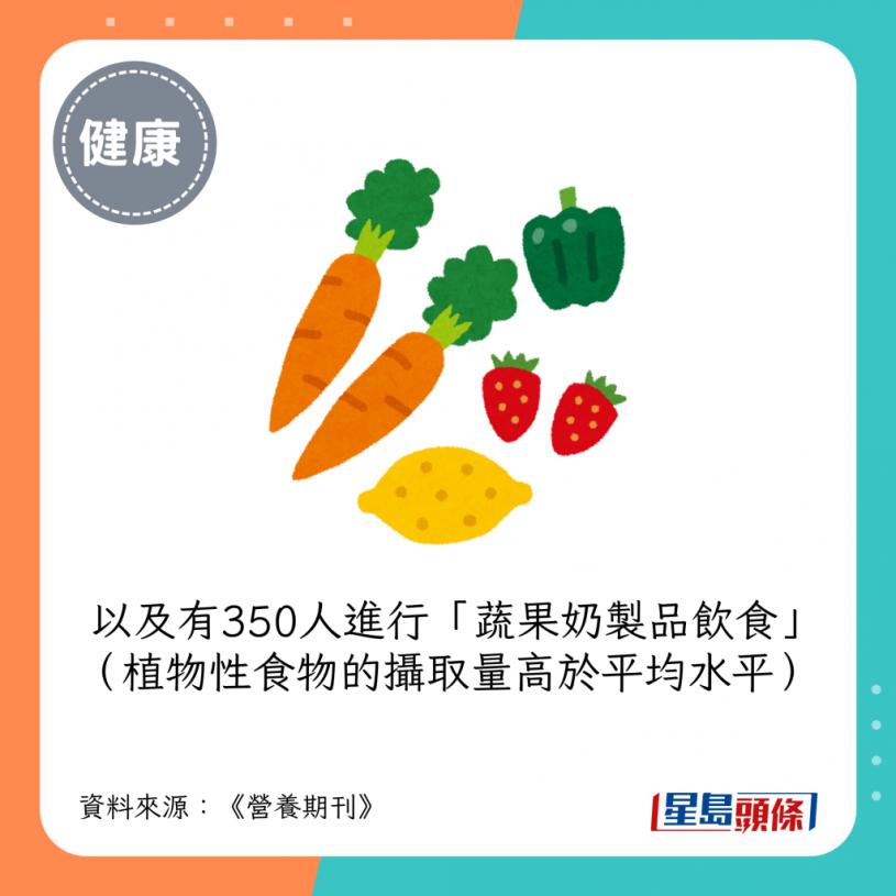 研究人員根據不同測試者的紀錄,將他們的飲食模式分為3大類型:有589人進行「日本傳統飲食」、有697進行「典型西方飲食」(以大量精緻碳水化合物、高脂肪食物、碳酸飲料和酒精為主要食物)、以及有350人進行「蔬果奶製品飲食」(植物性食物的攝取量高於平均水平)。