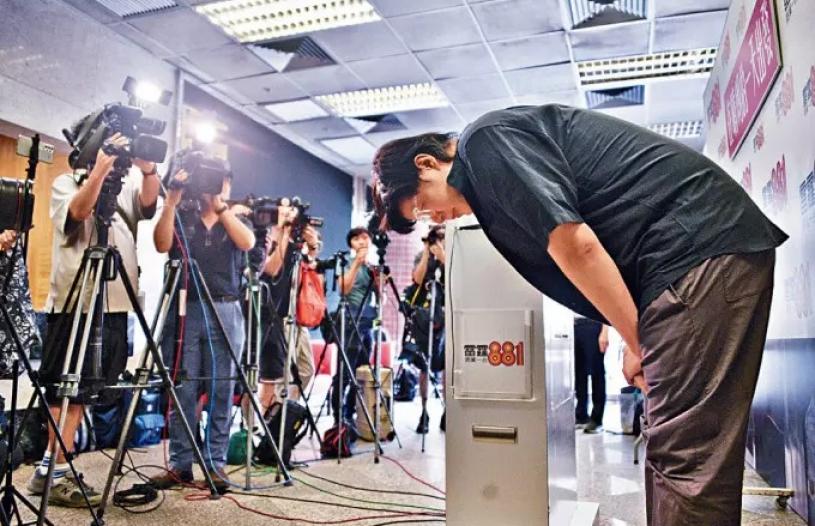 廖晃业在香港公开鞠躬感谢顾客,并向市民和食安中心致歉。