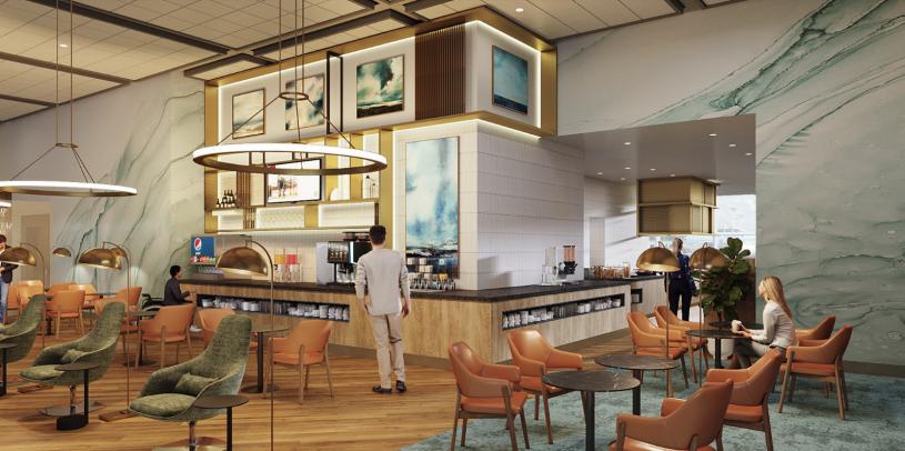 客人还可以享受改进的高速WiFi、充电站、私人工作空间和娱乐选项,以及美食餐饮,包括新鲜烹制的餐点、手工小吃、优质饮料、特色鸡尾酒和现场烹饪台。