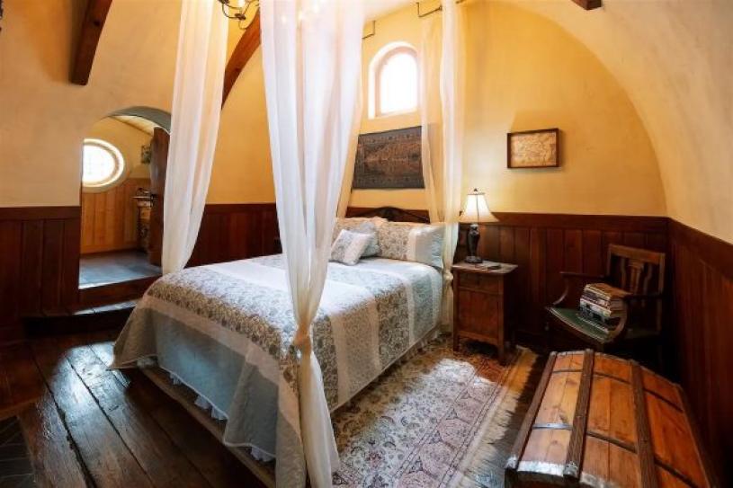 需要明确的是,在房地产清单上小屋的正式名称是“地球屋”(Earth House),跨国媒体公司华纳兄弟曾提出诉讼威胁,公司的代表要求屋主停止使用该公司的商标术语,但这栋住宅显然被设计为“哈比人之家”,它建在山坡上,有圆门、舒适的壁炉和适合Baggins的家具。