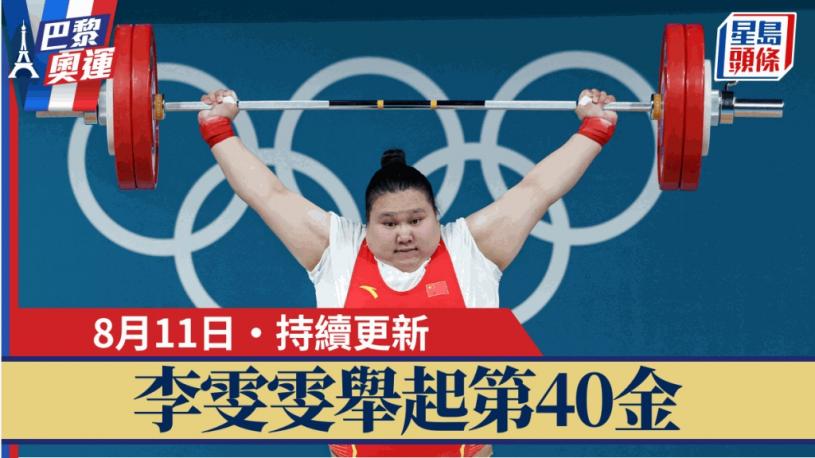 巴黎奧運終於來到最後一日,國家隊目前以39金排獎牌榜榜首,而李雯雯有望於今午5:30舉重女子81公斤級以上決賽為國家隊帶來第40金,創國家隊境外奧運最高金牌數。港隊方面,「小女車神」李思穎壓軸出場於下午5:00起出戰女子單車全能賽,大家記得支持。而閉幕禮將於香港時間今晚深夜3:00舉行,料又會是一場視覺盛宴。