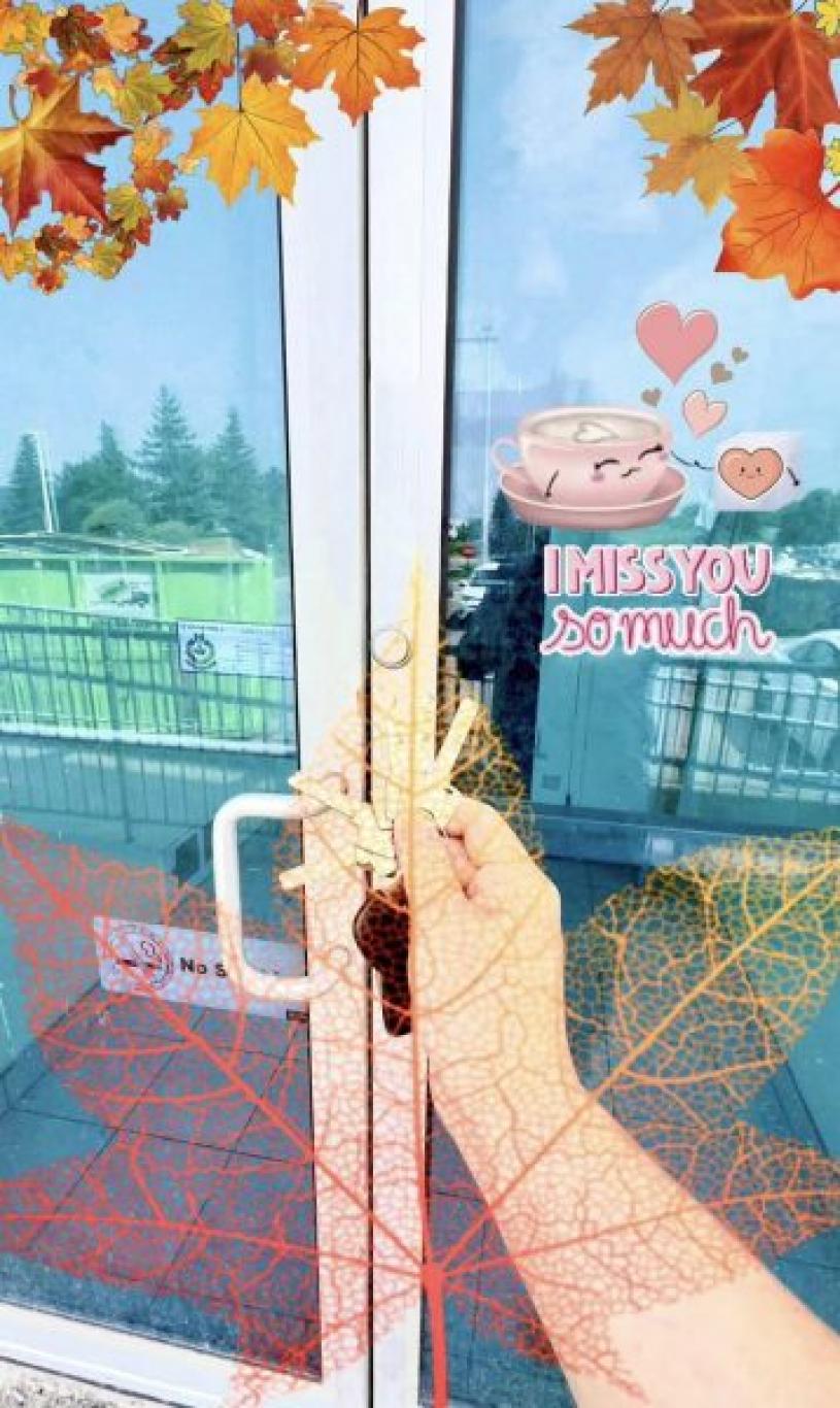 自结业后沉寂下来的“大渣哥茶记”社交媒体帐号昨有新消息,帖文分享一幅店舖的玻璃门面,加上咖啡杯、枫叶图案和“I Miss You So Much(我多么想念你)”的字句。