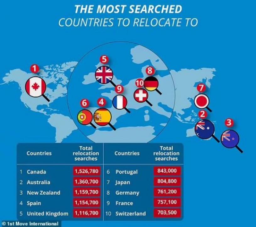 数据显示,在移居搜寻排行榜上,排行第3至6位的国家,依次为新西兰、西班牙、英国和葡萄牙 ,日本排行第7,亦是十大中唯一的亚洲国家。