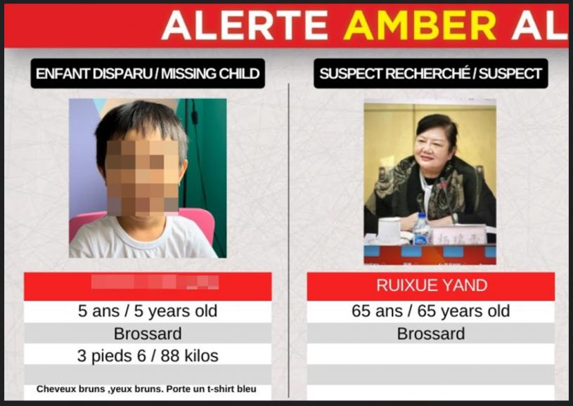 【星岛综合报道】周二(27日)凌晨,魁省和安省发布安珀警报,满地可南岸布罗萨德(Brossard)社区一名5岁华裔男孩被报告失踪。男孩最终在安省约克区被安全找到,两名华裔女子面临3项刑事指控。