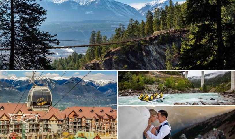 在7,700呎的高空,你将漂浮在云层之上,享受洛矶山、哥伦比亚河湿地,以及戈尔登镇的全景壮丽景色。在这趟旅途中,还可能会有发现野生动物的踪迹,踢马山度假村还提供一个绝无仅有的婚礼场地,即位于洛矶山顶端、屡获殊荣的鹰眼餐厅(Eagle's Eye Restaurant),餐厅被誉为加拿大最高的婚礼场地,以其绝美的自然背景为新人打造难忘的婚礼。