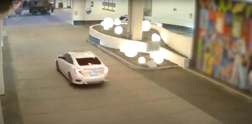 白色本田思域尾隨平治SUV進入地下停車場,該停車場為酒店及公寓停車場。