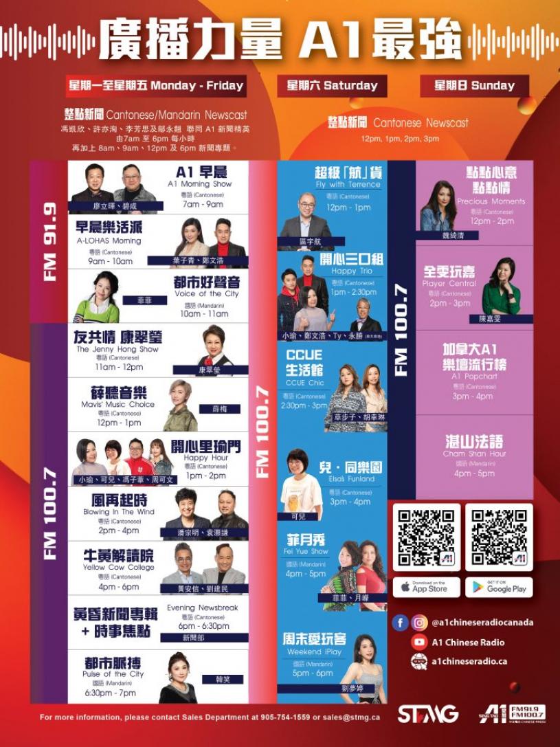 【节目全面睇】陪伴多伦多听众16年的星岛A1中文电台,一向深受听众爱戴。自今年六月将频道由AM迁往FM,为听众提高音质享受以后,来到九月,电台再有大搞作,强势推出全新节目编排,为听众带来全方位资讯娱乐新体验。