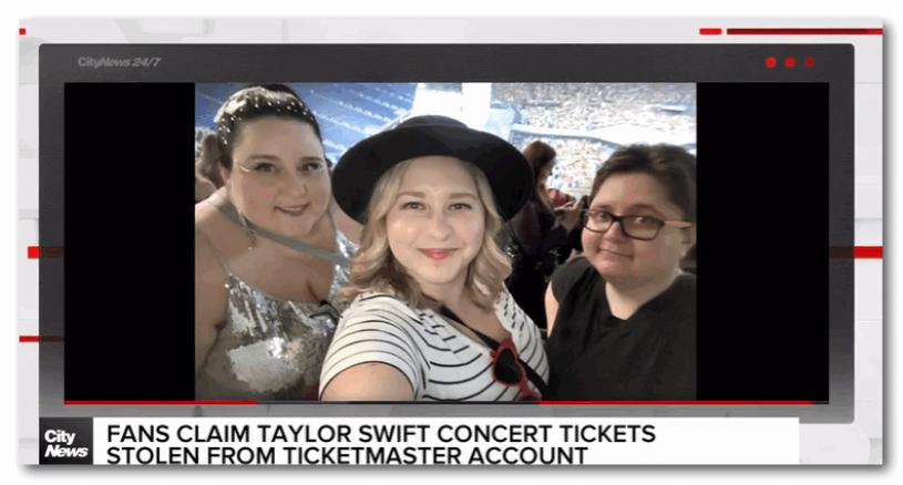 這位卑詩省北部居民Jeremy Brady說,2023年8月,他通過Ticketmaster以2000多加元的價格購買了兩張Taylor swift 11月在多倫多演唱會的門票。然而,今年9月,他表示兩張票從他的Ticketmaster賬戶中消失了,被轉到了別人那裡。