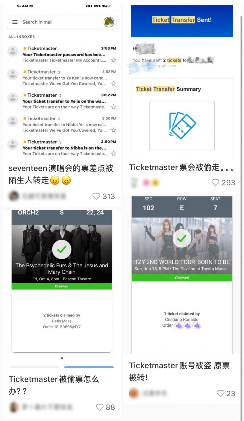 還有華人網友在社交媒體發帖,也遭遇了類似的偷票經歷。有的網友成功找回了票,有的收到了Ticketmaster的退款,但演唱會門票卻因為售罄買不到了。