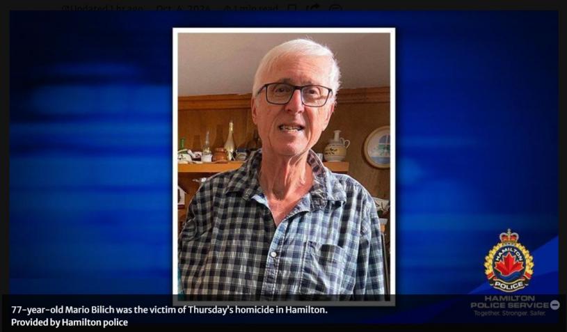 第三殺人宗案件於周四下午 12時30 分左右發生在咸美頓。警方稱,警員在Macnab 街北停車場發現一名失去意識的男子,他身上有類似刺傷的傷勢,當時情況嚴重,受害者被確認為77歲的Mario Bilich(下圖),他被緊急送往醫院,但後來因傷勢過重死亡。