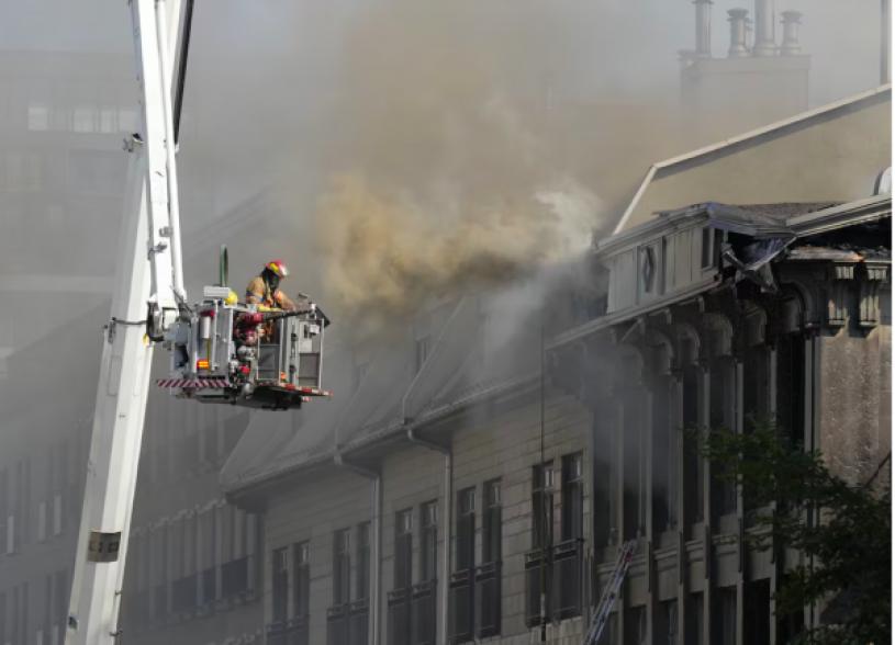 火灾先从大楼主层燃起,其后火势迅速蔓延,引发五级火灾警报,大约125名消防员和50辆消防车参与灌救。