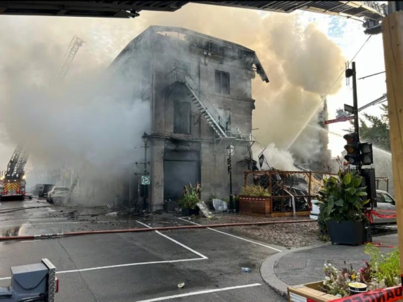 大火一直持续到下午,这座100年历史的三层楼房被完全烧毁,该大楼的主楼设有一家餐厅,楼上设有一家旅馆。