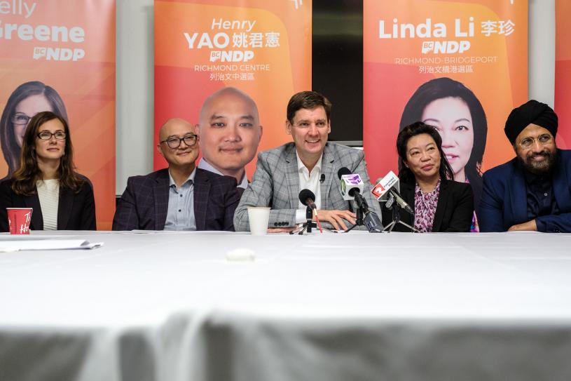 尹大卫在列治文的媒体会上,率领 8 名候选人亮相,包括 4 名列治文候选人 - 桥港区的李珍 (Linda Li)、中区的姚君宪 (Henry Yao)、史蒂文斯顿选区的葛凯莉(Kelly Greene) 和昆士堡区的辛欧曼 (Aman Singh)。外加本拿比 2 名候选人 - 中区的康安礼 (Anne Kang)、南铁道镇的崔保罗 (Paul Choi),以及温哥华菲莎围选区的周炯华 (George Chow) 和耶鲁镇选区的杨子亮 (Terry Yung)。