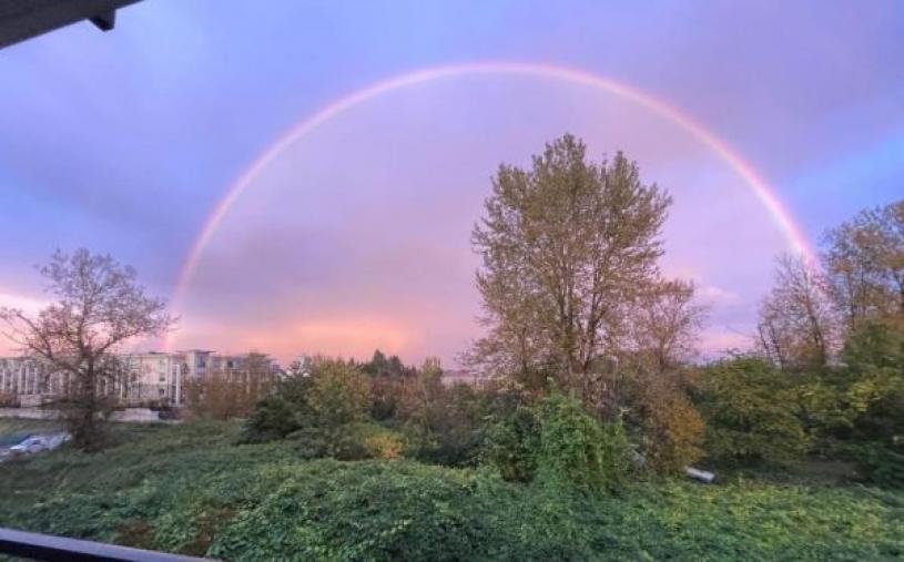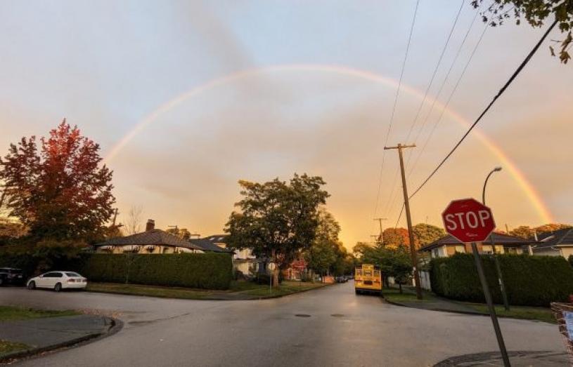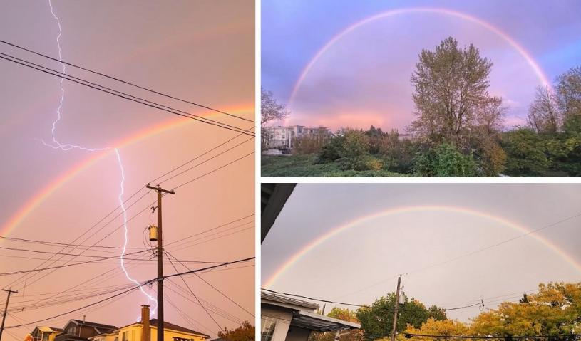 【星岛综合报道】在一场短暂但淋漓的骤雨过后,大温地区上空罕见地同时绽现出夺目的彩虹和闪电。