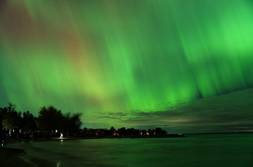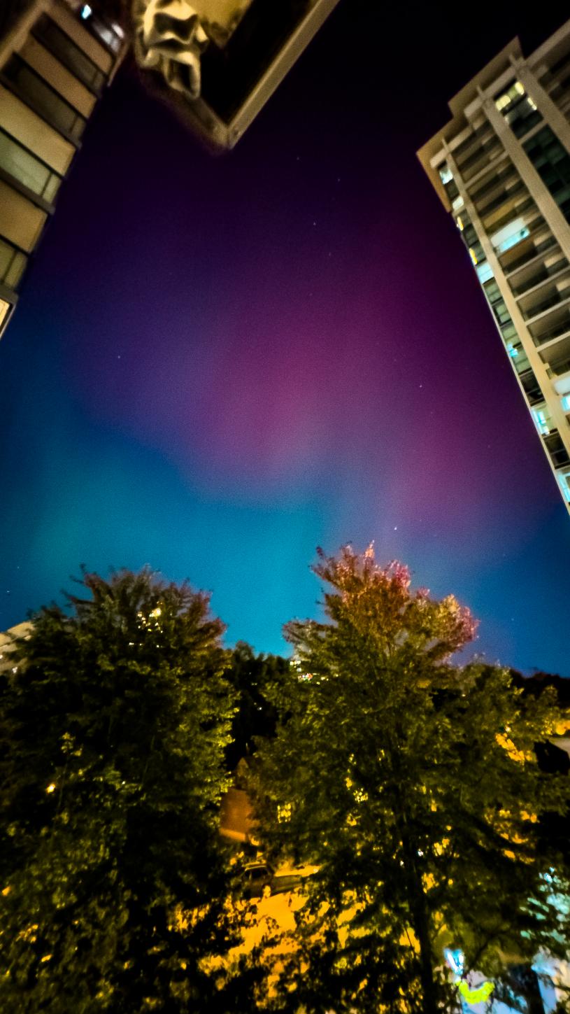 【星岛综合报道】昨夜G4(严重)级地磁风暴又至,全加拿大极光大爆发,强度及覆蓋地区媲美今年五月。高峰时期,不少大多区市民甚至可以在住宅阳台以肉眼观察此天象奇观。