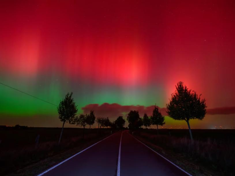 截至周五,本周的北极光报告已远至美国亚利桑那州(Arizona),甚至意大利部分地区,克努森表示,周四的北极光骚是由于地球大气层中发生“极端”磁暴造成的。