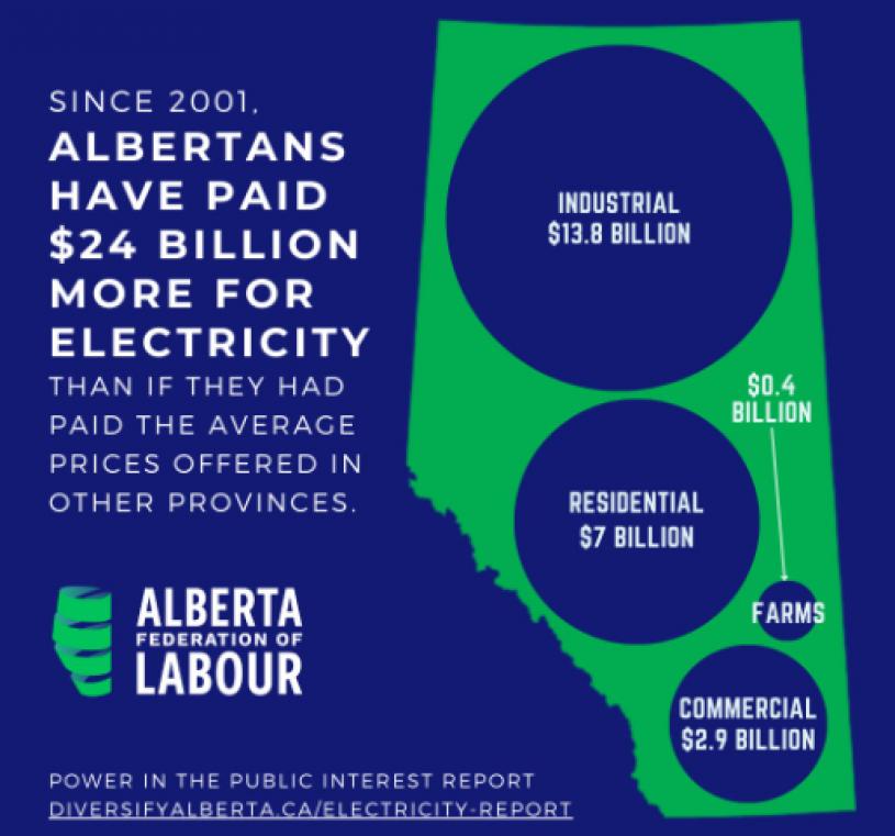AFL表示:“自2001年该省解除对发电的管制以来,亚省的电力消费者物价指数平均每年上涨1.8%,比整个加拿大还要高,是解除管制前的两倍。”