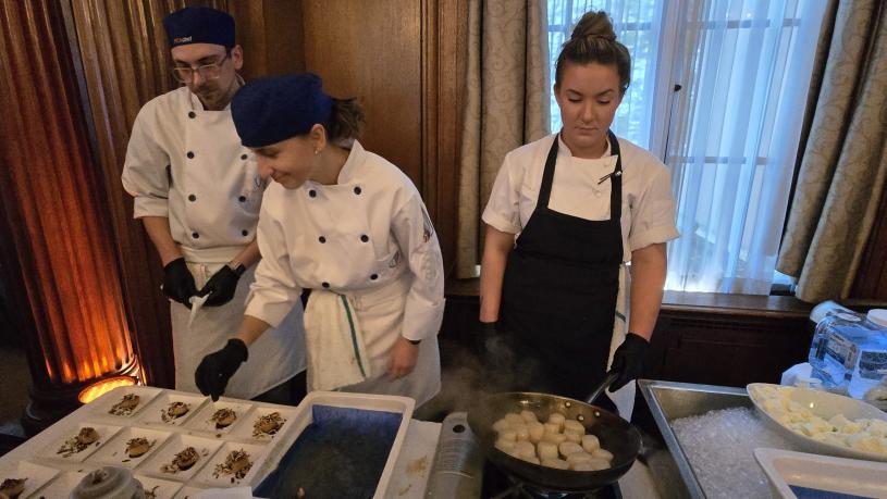 (厨师Tiffany Marshall在现场煎干贝、佐以特别的爆米花,香味四溢,让人食指大动。)