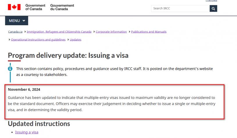 加拿大移民部(IRCC)官網周三(6日)上傳了有關簽證項目交付更新通知。項目交付更新是用於告知其員工IRCC官方指令更新的簡短公告,發布在部門網站上,以方便利益相關者查閱。