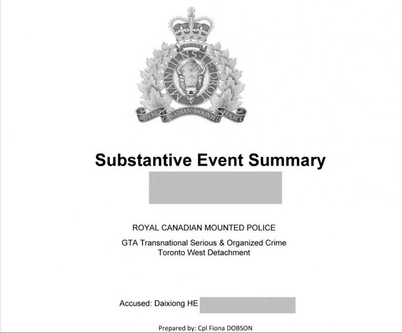 但加拿大皇家騎警的報告並未完整公布,塗黑了整整八頁內容。加拿大皇家騎警的報告顯示,何並不是大多區唯一一個流通假硬幣的人,也無法解釋為何他擁有大量加幣。