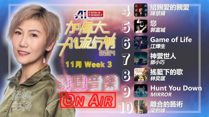 【加拿大A1流行榜2024】11月第3週 結果揭曉