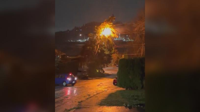 在边境以南的华盛顿州林伍德社区,一棵树倒在无家可归者营地,导致一名妇女死亡。