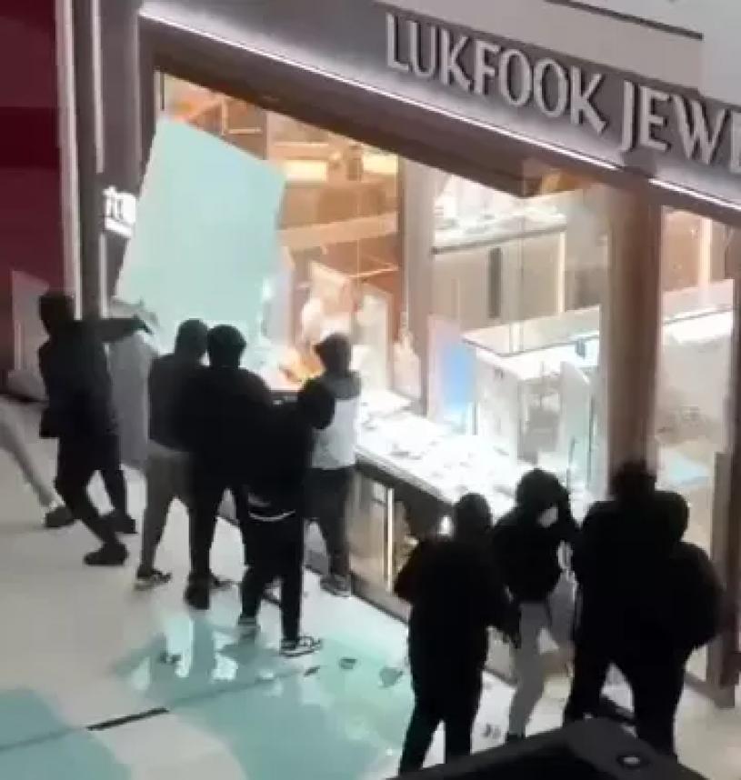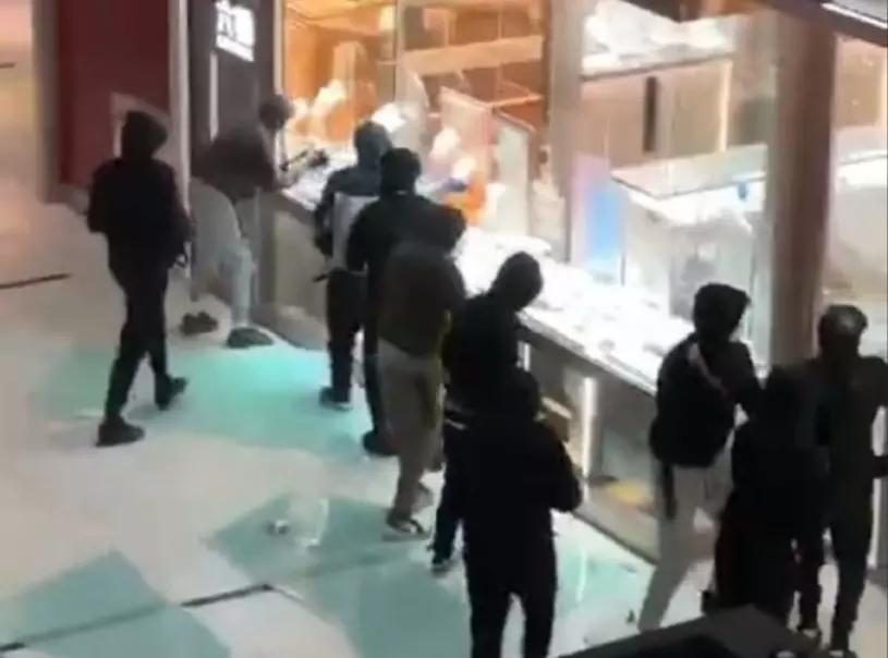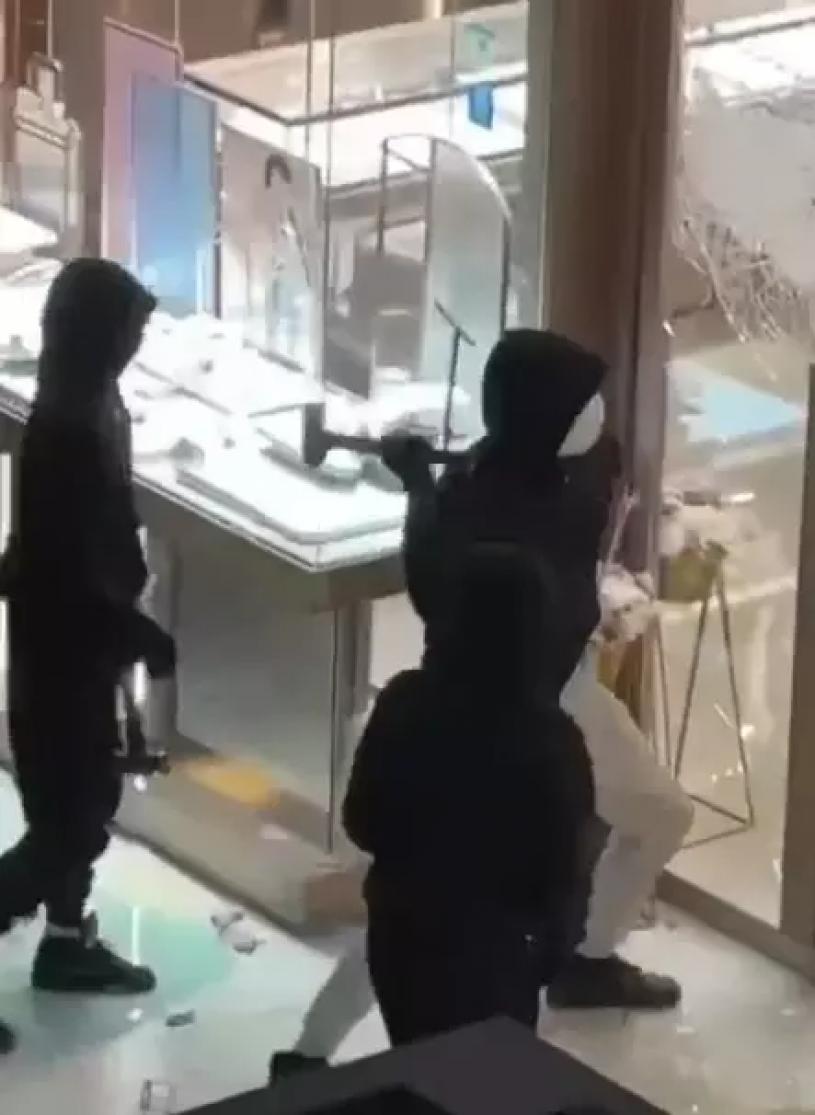 案发于昨日中午时分,有不少网民将短片放上社交媒体,其中流传于IG及《小红书》的影片可见,六福珠宝遭至少10名蒙头群匪持锤及工具敲碎玻璃橱窗后,抢走珠宝展示柜的珠宝。